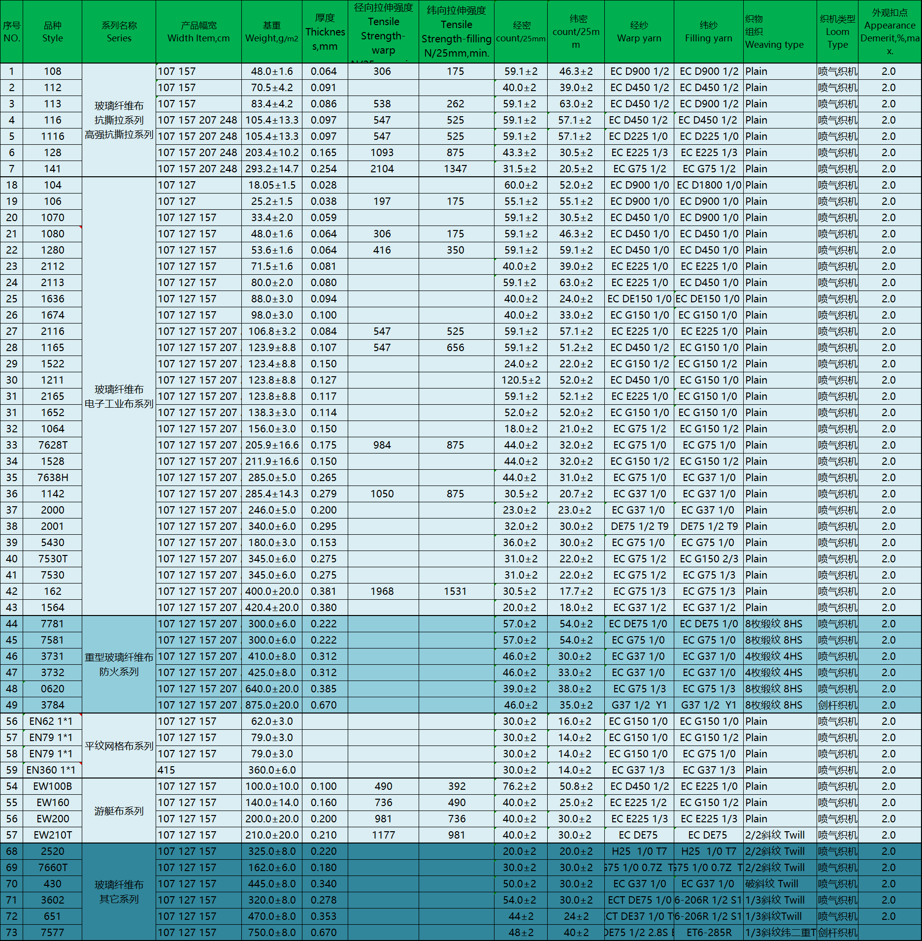 織造規(guī)格:平紋,斜紋,緞紋,雙層平紋,高經(jīng)緯密等